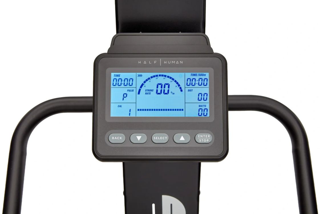 Target muscles in your core, arms and legs simultaneously and get a full body cardio workout with the Half Human air ski machine. For smooth, fluid motion and a natural feel, this versatile indoor skiing machine offers 10 levels of air resistance providing challenge and variety. Perfect for double pulls and a traditional alternating arm technique, the ski machine is suitable for HIIT workouts and sprint-based training. Featuring Bluetooth connectivity and a built-in smart device holder, it lets you get accurate motion recording, analyse performance, and explore the world with the compatible D-fit and Kinomap apps. It boasts an intuitive 5" LCD display to keep track of your progress and has a selection of 8 motivating onboard workouts enabling you to build endurance and tone the entire body.