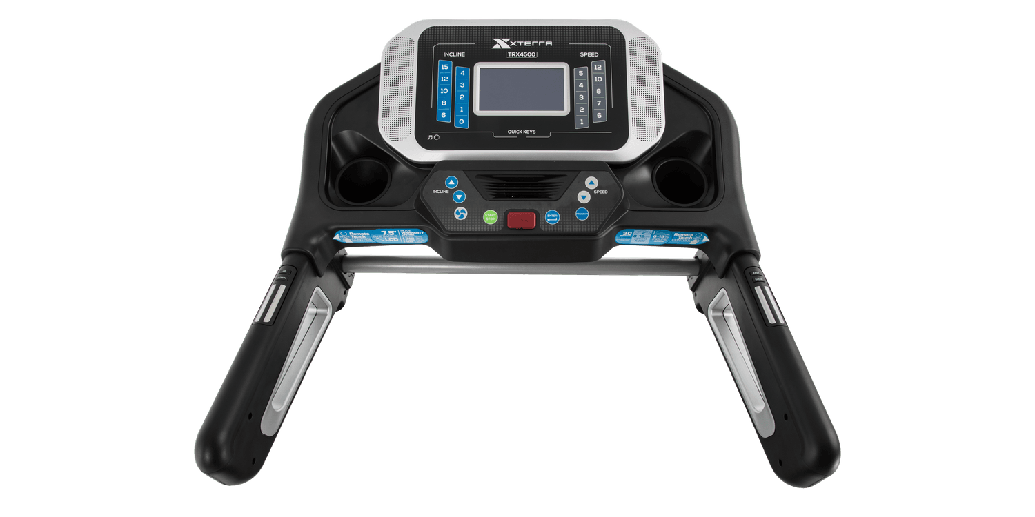 The premium features and advanced design of the XTERRA Fitness TRX4500 Folding Treadmill allow users of all fitness levels to challenge themselves and maximize their results. The oversized 7.5" bright blue backlit LCD display with 30 pre-set programs provides the variety needed to take your fitness to a new level.